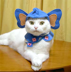 Of course quantum theory implies that getting too close to our cats invokes a kind of Heisenberg Uncertainty Principle in which our desperate tendency to anthropomorphize actually obliterates any possibility of understanding them. When carried to extremes, this can have a demented beauty of its own. Witness for example the following images from pet office’s site, the very embodiment of the saccharine Japanese concept of kawaii.