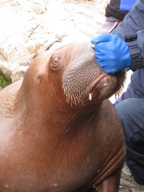I am standing on a slippery rock next to a two thousand pound mountain of leathery blubber. Steam is coming out of her nostrils and she is turning her head toward me, wanting to get her whiskers rubbed. I’m a little freaked out but I oblige, and before I know it, I’ve fallen in love. Welcome to the walrus enclosure at the New York Aquarium. I recently spent the day there, looking behind the scenes, with a friend who has worked with the walruses, seals and sea lions there for years, training them and tending to their needs. Most of these creatures arrive at the aquarium as foundlings – in the case of the walruses, orphaned pups, whose mothers were killed in a subsistence hunt off the Alaskan coast. It didn’t take long for me to notice how mutually affectionate the relationships were between these animals and their caregivers – relationships that were so full of nuance and tenderness that it was obvious I was dealing with some pretty special creatures. Pinnipeds, as the members of the seal and walrus family are called, are easily as smart as dogs, maybe more so although it is hard to judge these thing precisely. They have complicated social hierarchies, can learn to respond to complex commands and like to play. They are the kind of animals we should feel a great fondness for but our species’ interactions with them have been violent throughout history. Perhaps it is because pinnipeds carry out the most graceful parts of their lives submerged in water, invisible and unknowable, that we have always felt compelled to set upon them as soon as they haul themselves out into our more solid environs. On some level, we must have always wondered what it might be like to be one of them, transiting at will between the world of land and air and the alien depths of the sea. Maybe we were even a bit jealous. But are the minds of animals really so unknowable? What is this separation between us and them? Is it all in our perception?